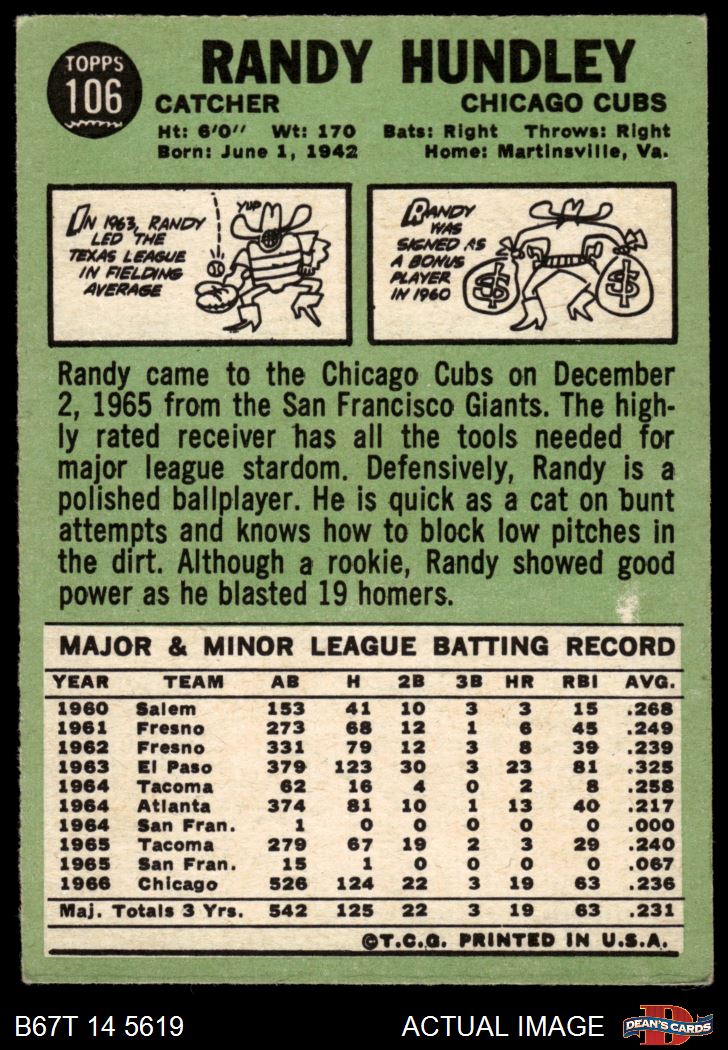 1967 Topps #106 Randy Hundley 4.5 - VG/EX+