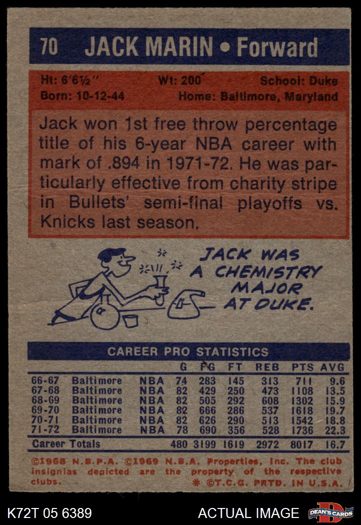 1972 Topps #70 Jack Marin 2 - GOOD