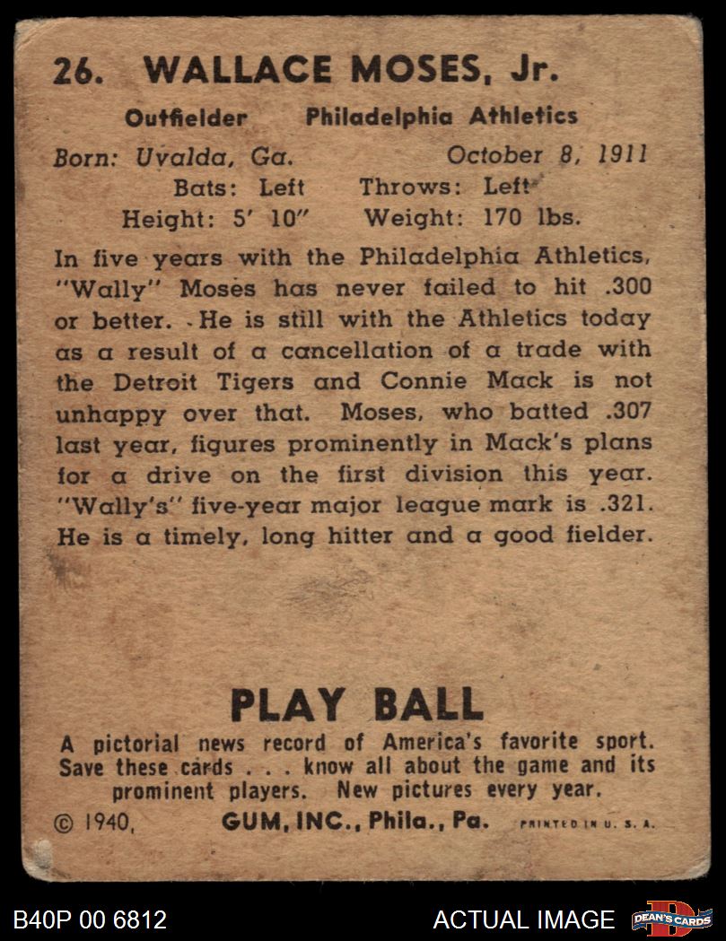 1940 Play Ball (R335) Baseball Cards (975 available)1940 Play Ball Athletics (129 available)
