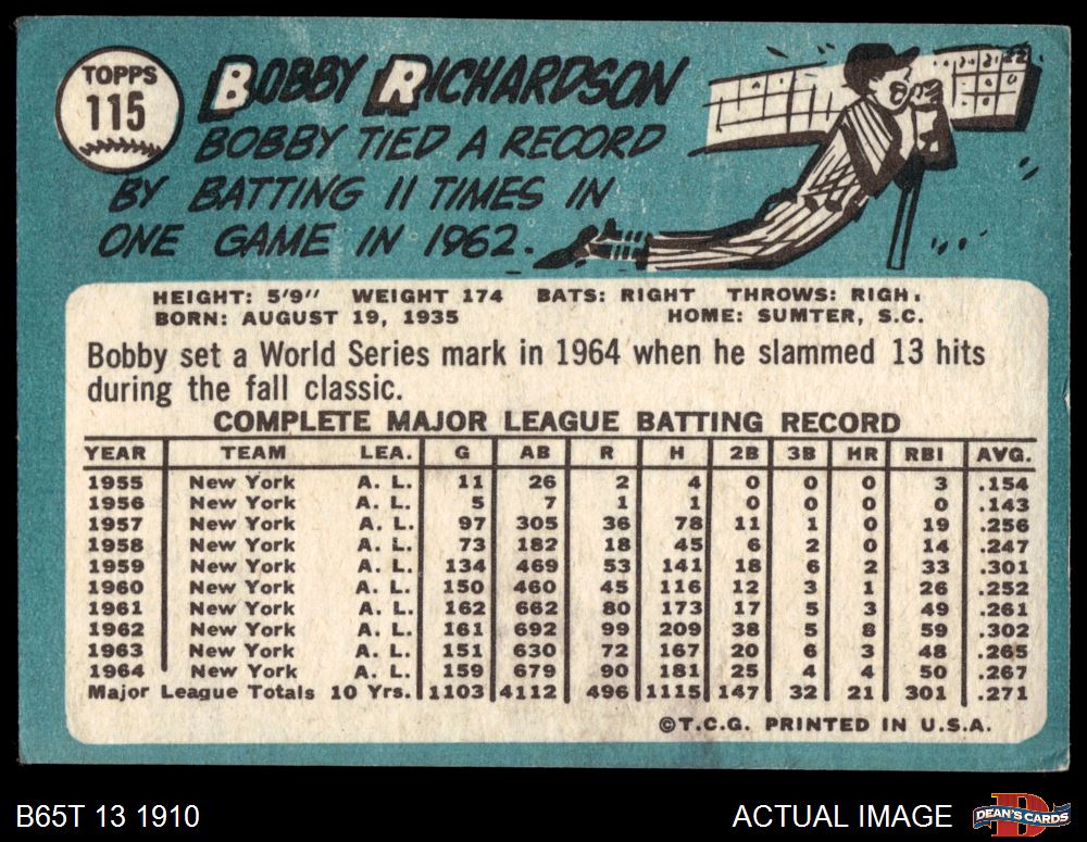 1965 Topps #115 Bobby Richardson