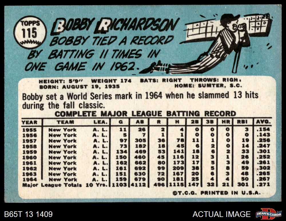 1965 Topps #115 Bobby Richardson 4 - VG/EX