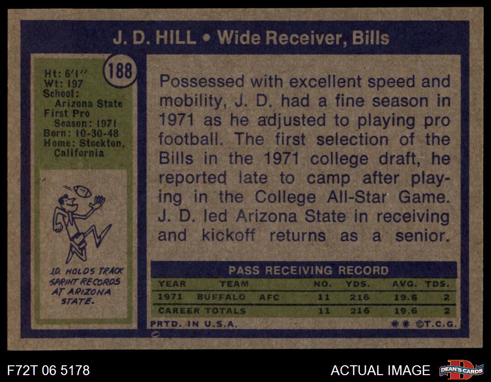 1972 Topps #188 J.D. Hill 8 - NM/MT