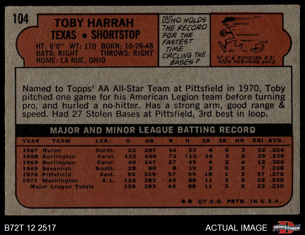 1972 Topps #104 Toby Harrah 2.5 - GD+