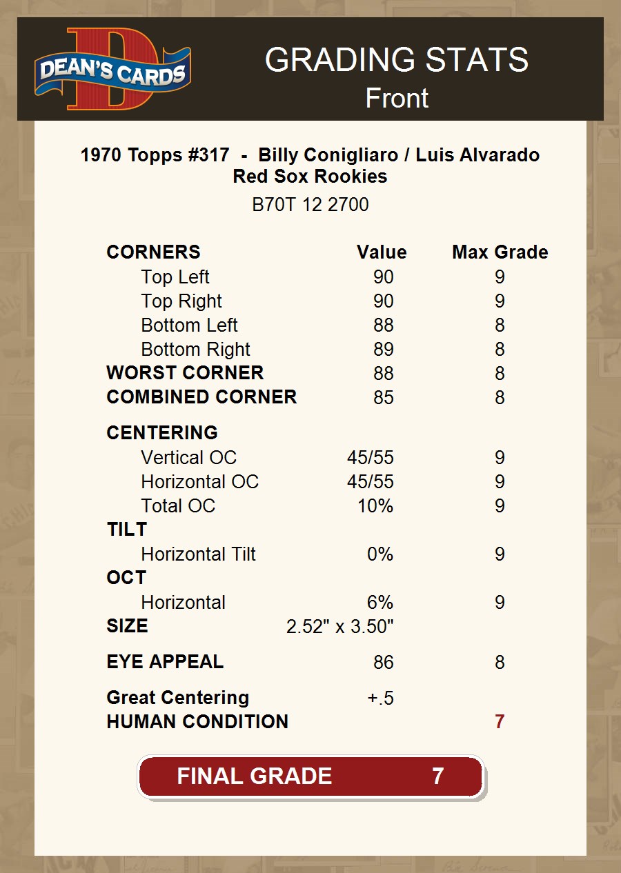 1970 Topps #317 - Billy Conigliaro / Luis Alvarado Red Sox Rookies 7 - NM