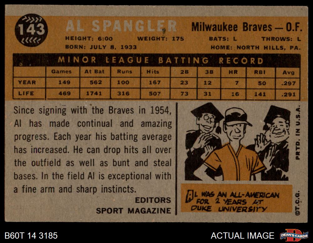 1960 Topps #143 - Al Spangler Rookie Star 3 - VG