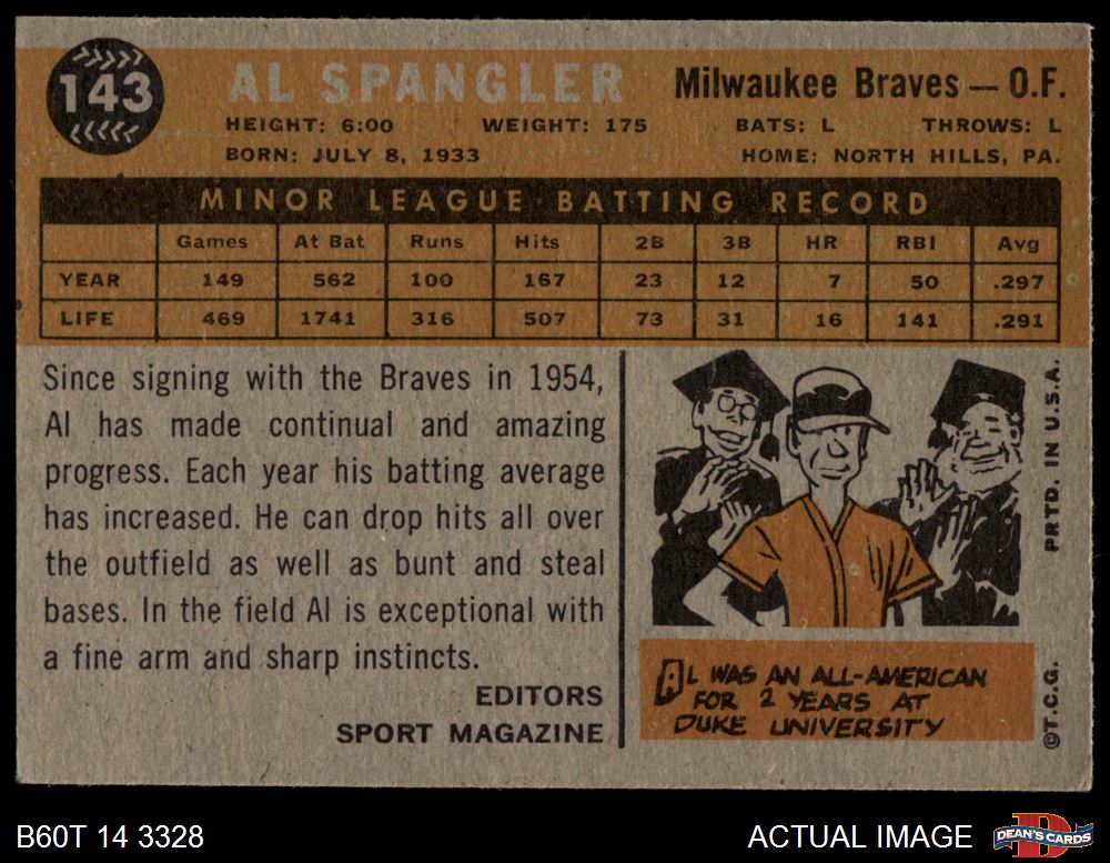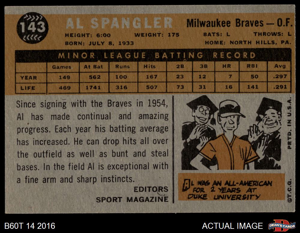 1960 Topps #143 - Al Spangler Rookie Star 4 - VG/EX