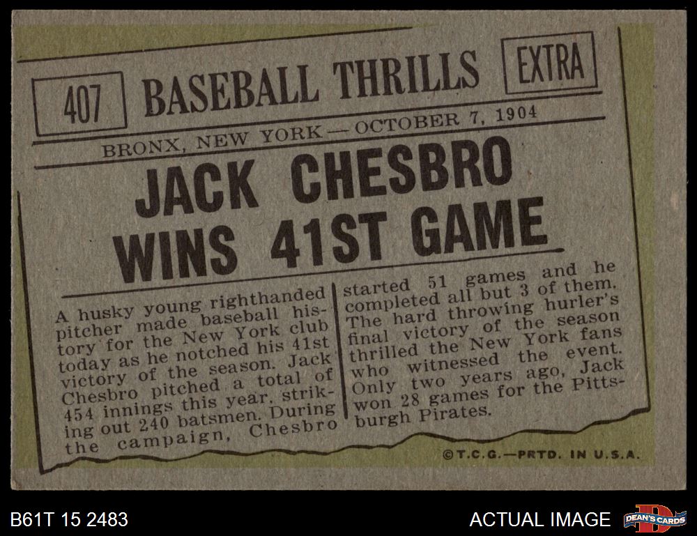 1961 Topps #407  -  Jack Chesbro Baseball Thrills Front Thumbnail