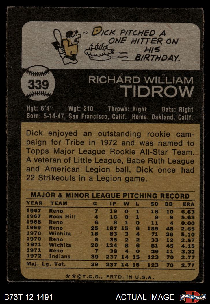 1973 Topps #339 Dick Tidrow 3 - VG