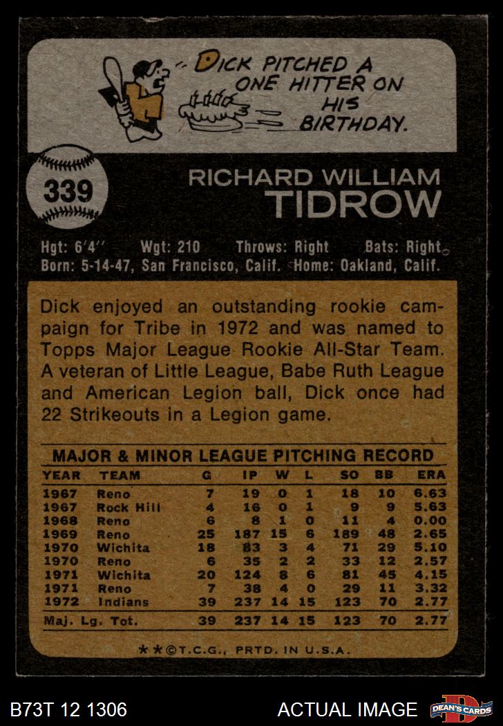 1973 Topps #339 Dick Tidrow 7 - NM