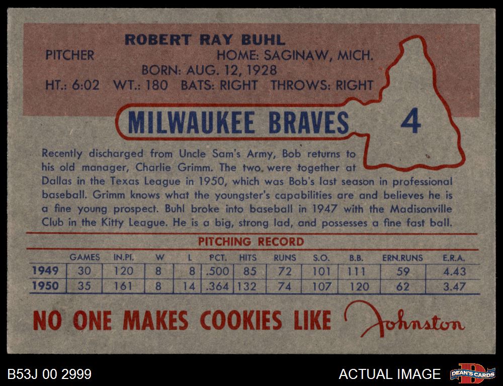 1953 Johnston Cookies #4 Bob Buhl 6 - EX/MT