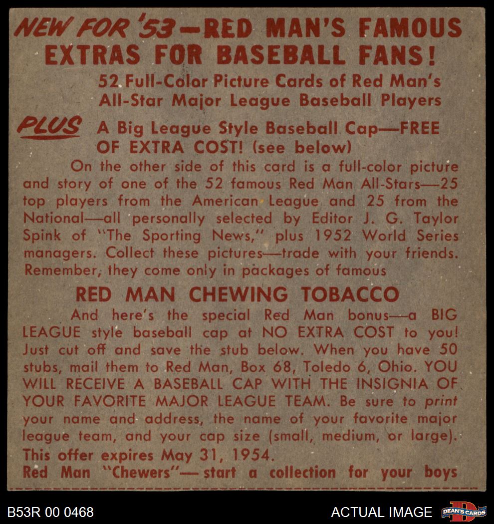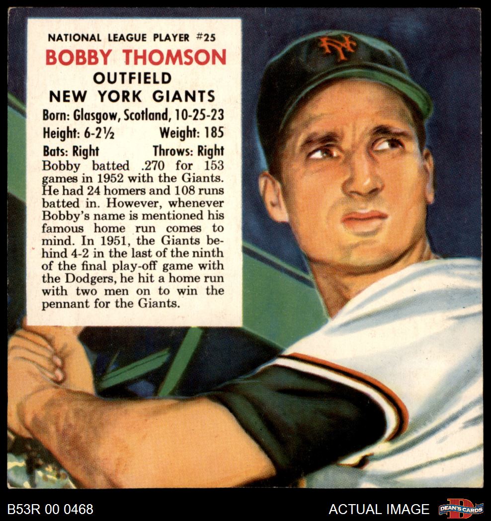 1953 Red Man #25 NL x Bobby Thomson 4 - VG/EX