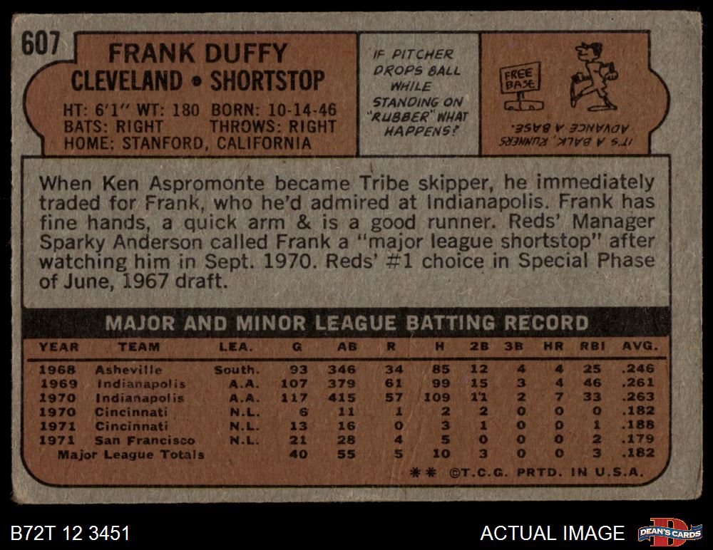 1972 Topps #607 Frank Duffy 1.5 - FAIR