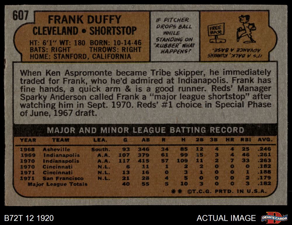 1972 Topps #607 Frank Duffy 4 - VG/EX