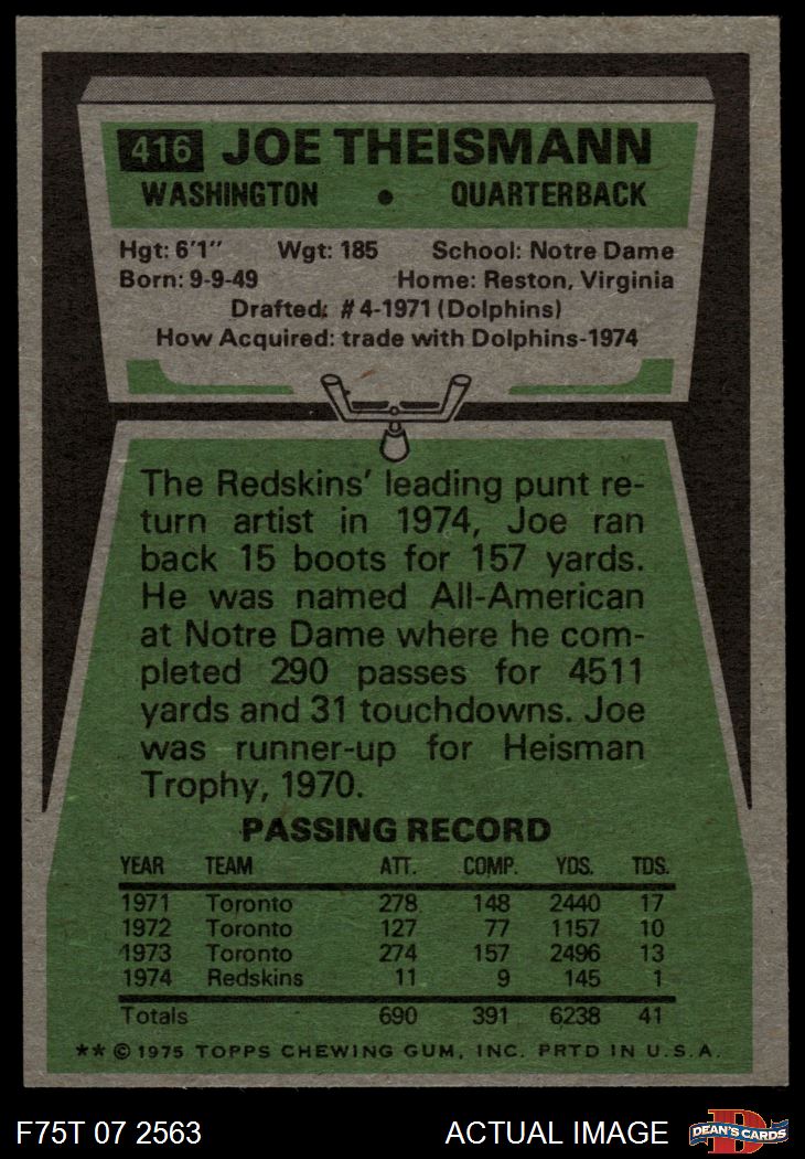 1975 Topps #416 Joe Theismann