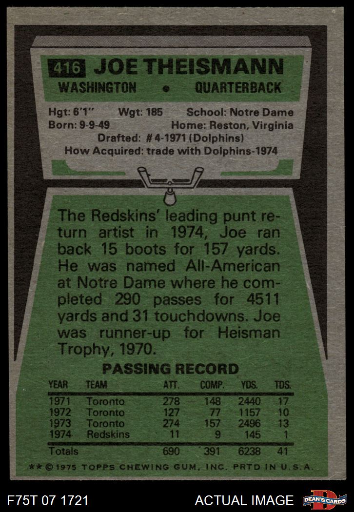 1975 Topps #416 Joe Theismann 6 - EX/MT