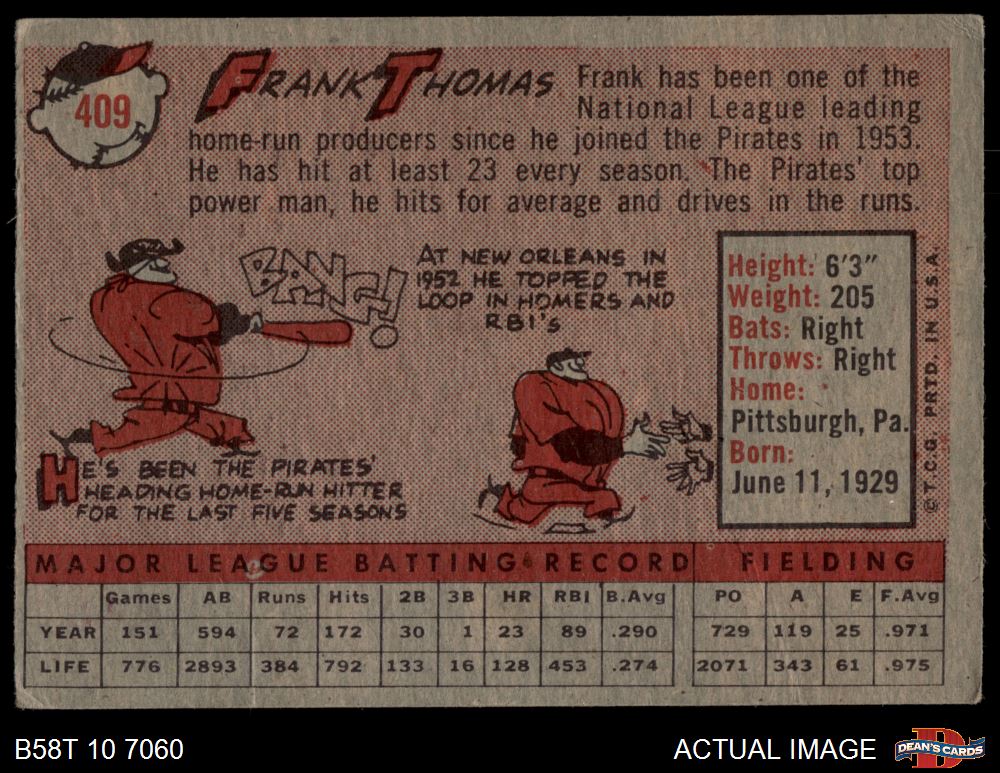 1958 Topps #409 Frank Thomas 3 - VG