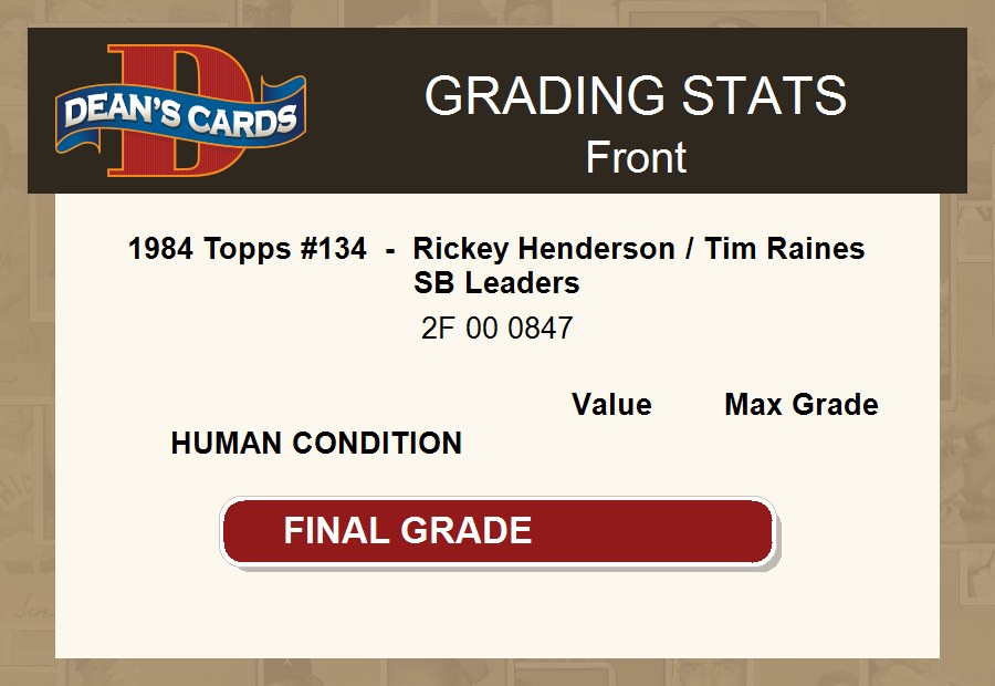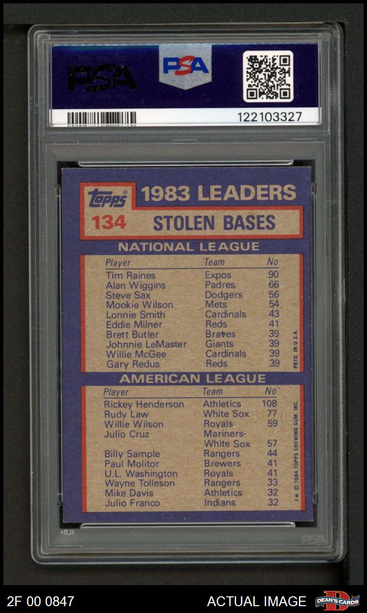 1984 Topps #134 - Rickey Henderson / Tim Raines SB Leaders PSA AUTOGRAPHED