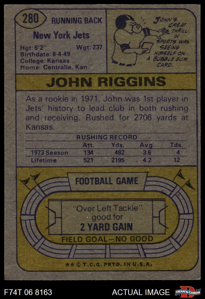 1974 Topps #280 John Riggins 4 - VG/EX