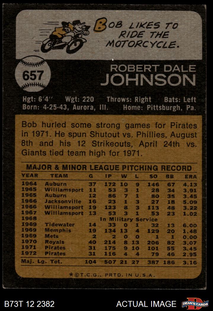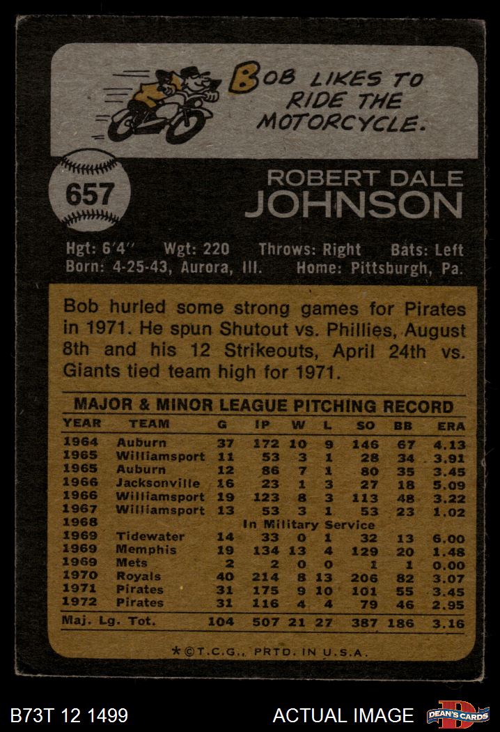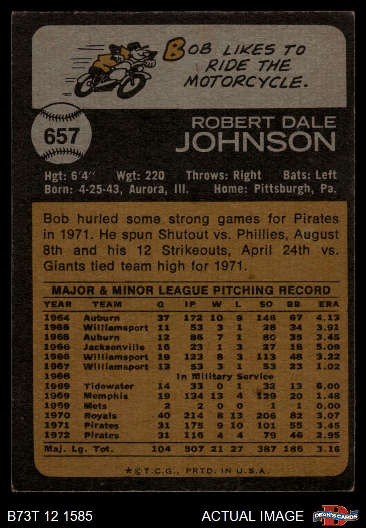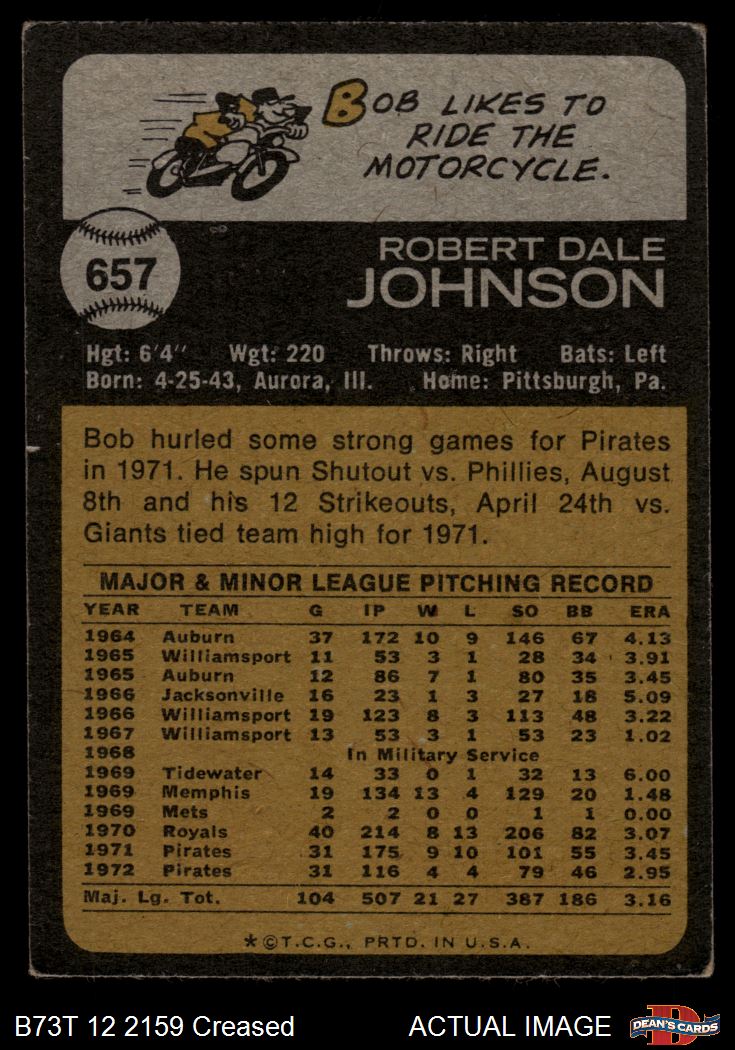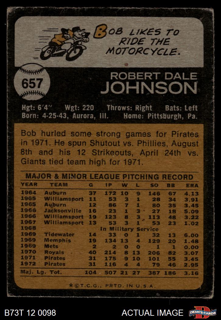 1973 Topps #657 Bob Johnson 2 - GOOD