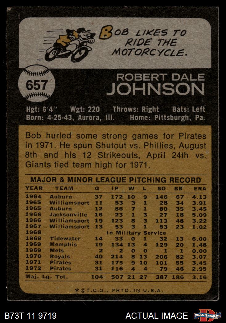 1973 Topps #657 Bob Johnson 5 - EX