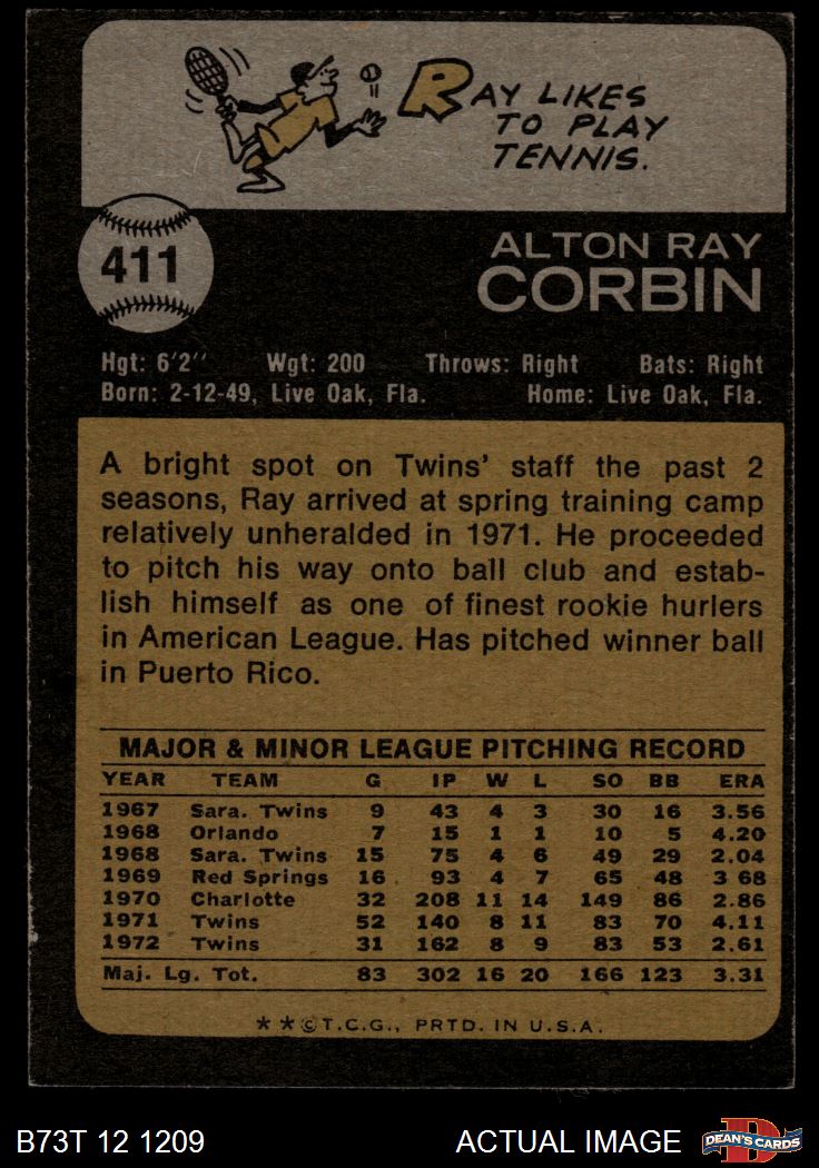 1973 Topps #411 Ray Corbin 3 - VG