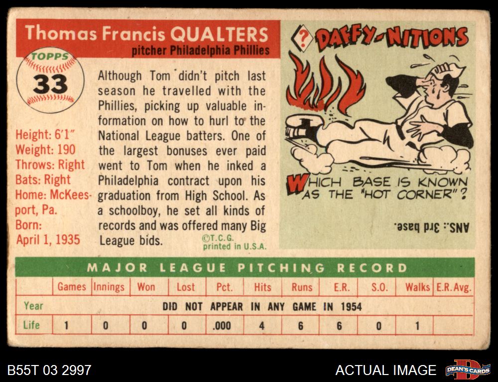 1955 Topps #33 Tom Qualters