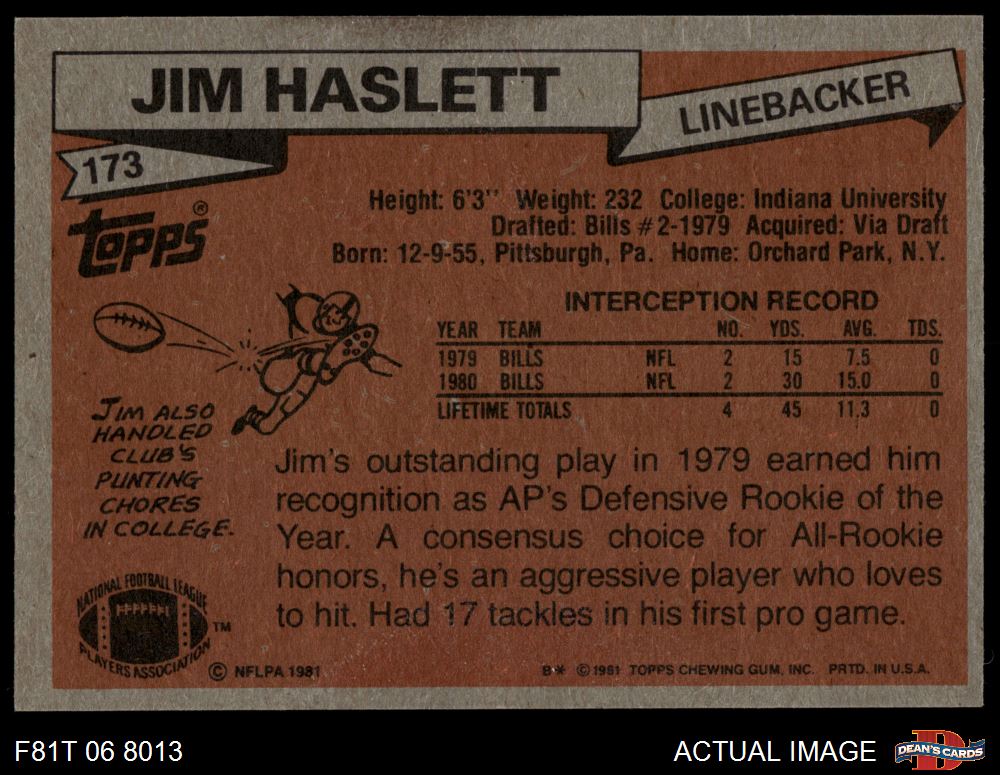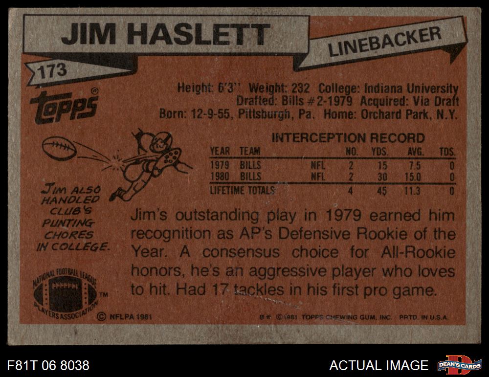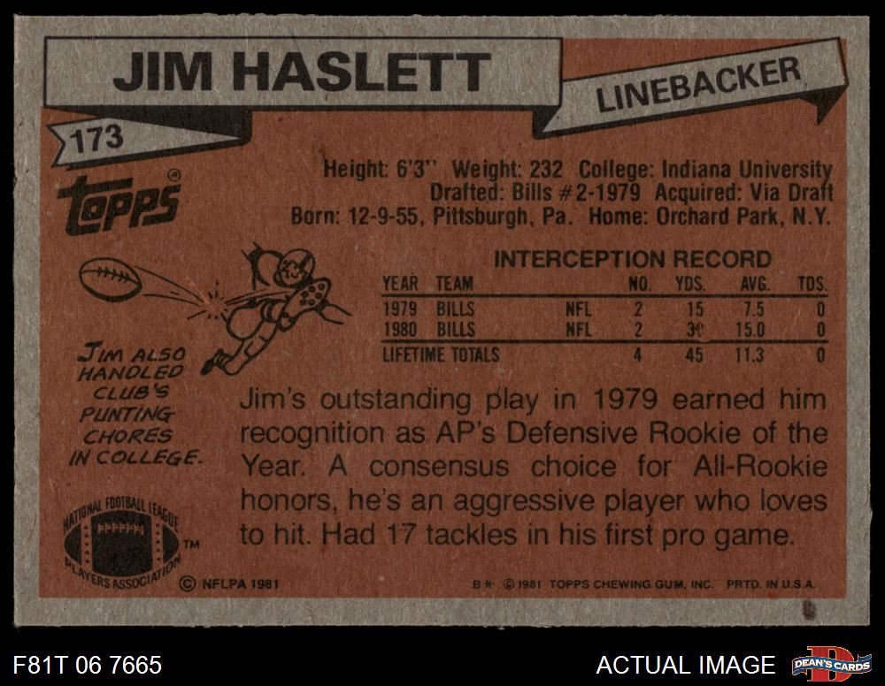 1981 Topps #173 Jim Haslett