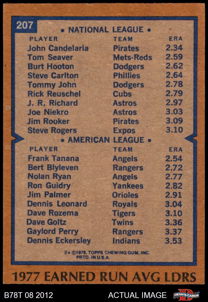 1978 Topps #207 - John Candelaria / Frank Tanana ERA Leaders 4 - VG/EX
