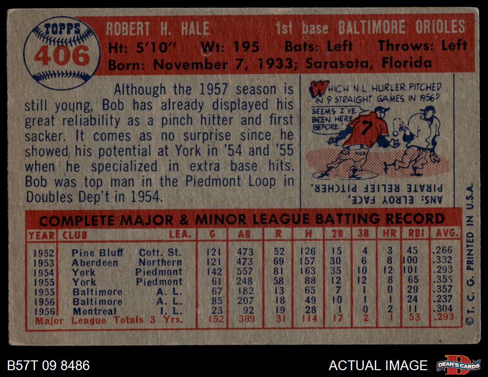 1957 Topps #406 Bob Hale