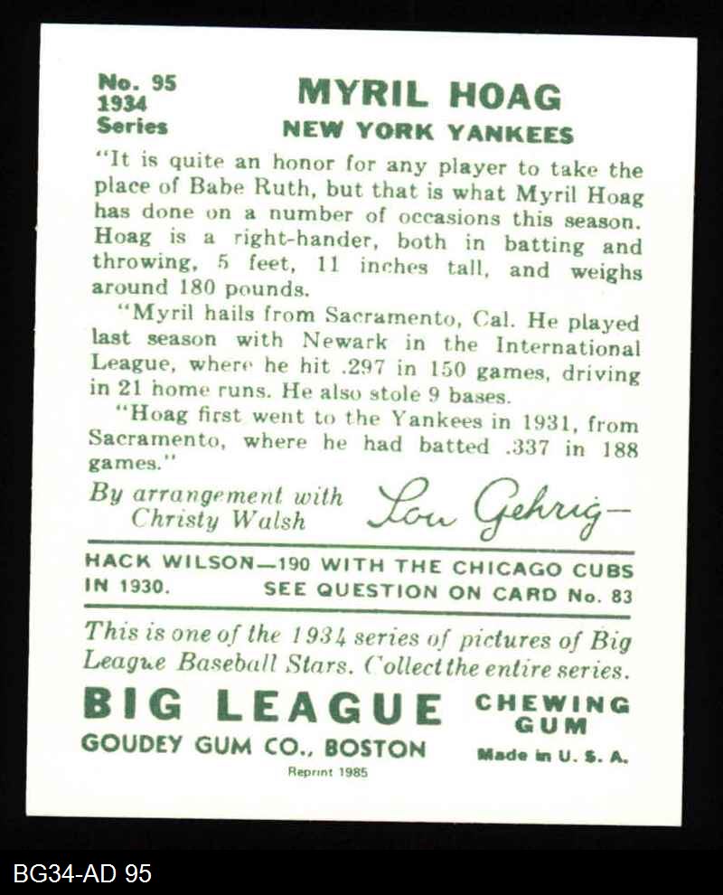 1934 Goudey Reprint (492 available)1934 Goudey Reprint Yankees (31 available)