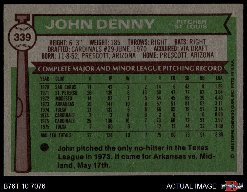 1976 Topps #339 John Denny 4 - VG/EX