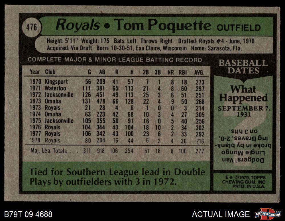 1979 Topps #476 Tom Poquette 3 - VG