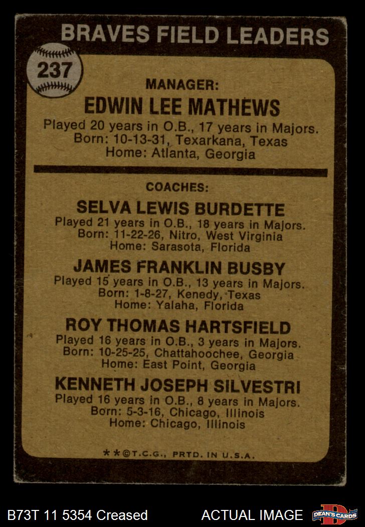 1973 Topps Baseball Cards (11,602 available)1973 Topps Braves (591 available)