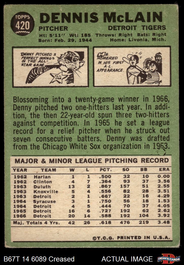 1967 Topps #420 Denny McLain 1.5 - FAIR