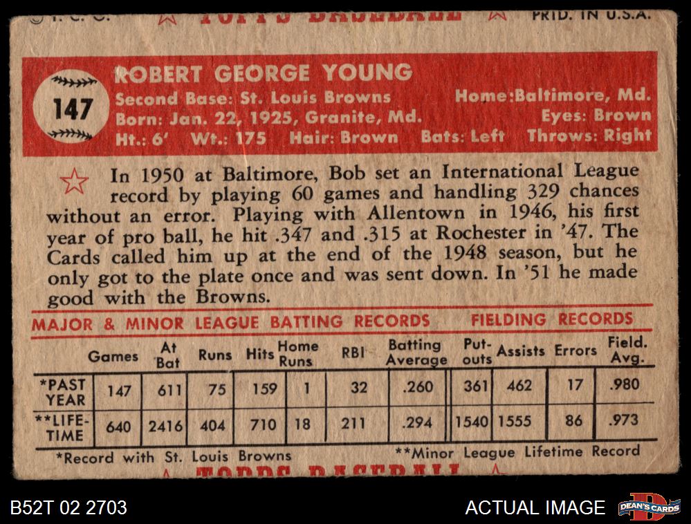 1952 Topps #147 CRM Bob Young 1.5 - FAIR