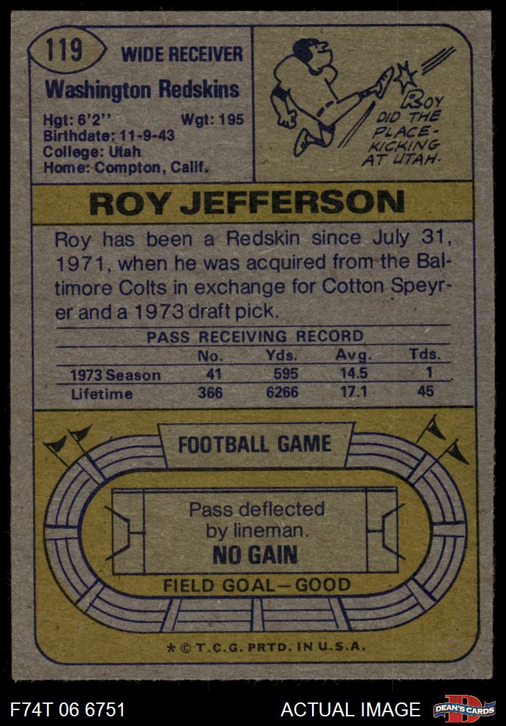 1974 Topps #119 ONE Roy Jefferson 6 - EX/MT