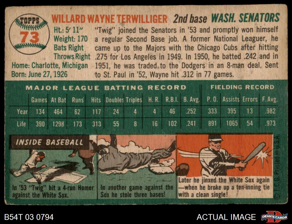 1954 Topps #73 Wayne Terwilliger 1 - POOR