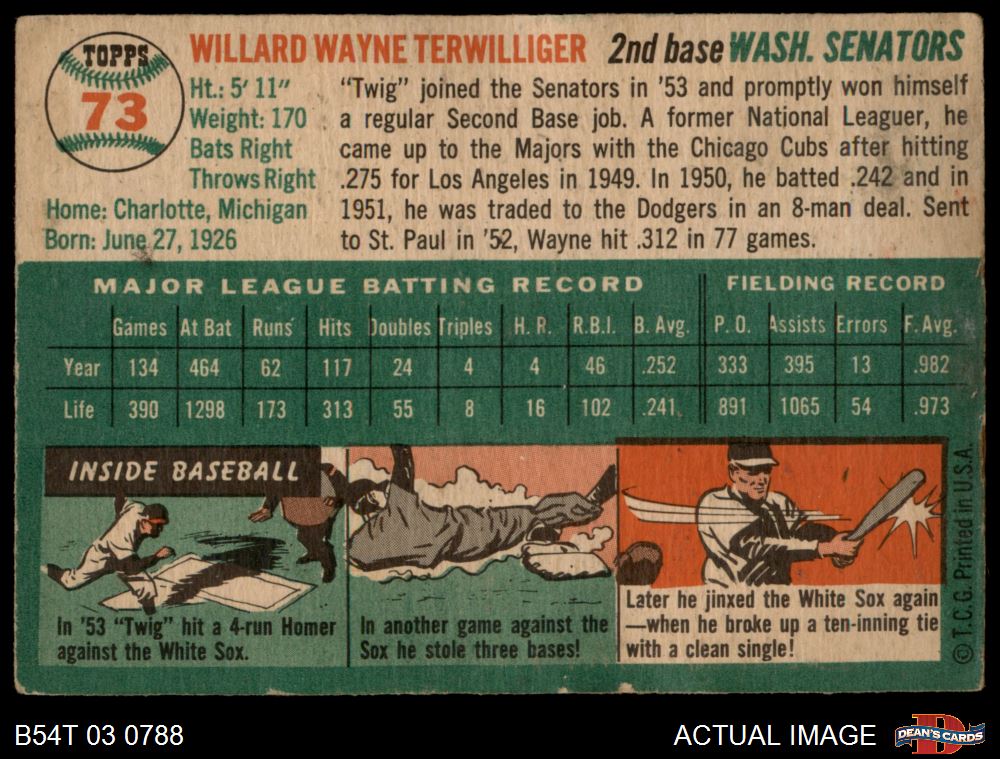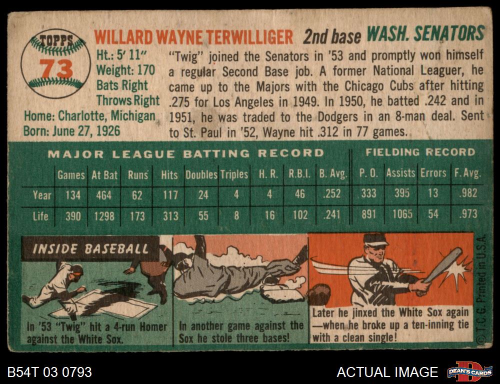 1954 Topps #73 Wayne Terwilliger 1.5 - FAIR