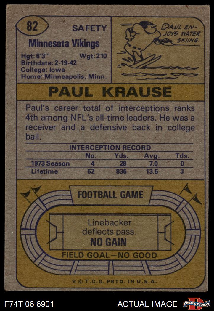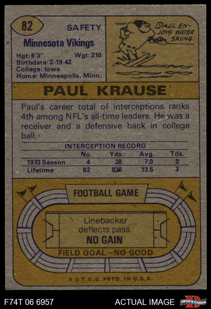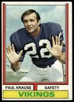 1974 Topps #82 Paul Krause 4 - VG/EX