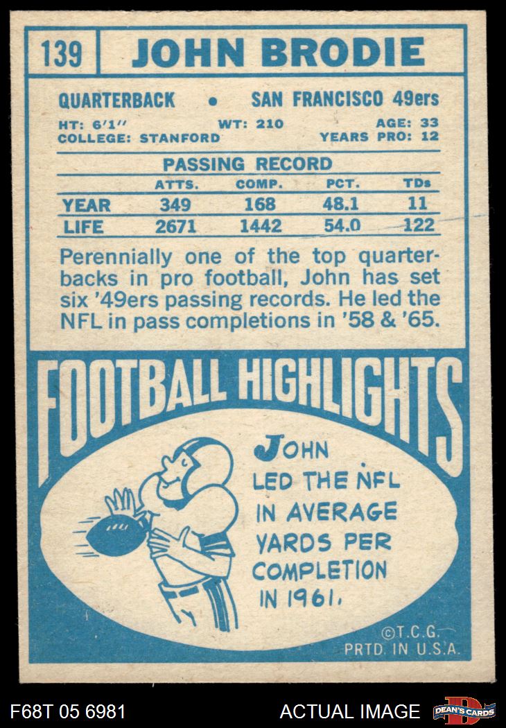 1968 Topps Football Cards (2,556 available)1968 Topps 49ers (103 available)