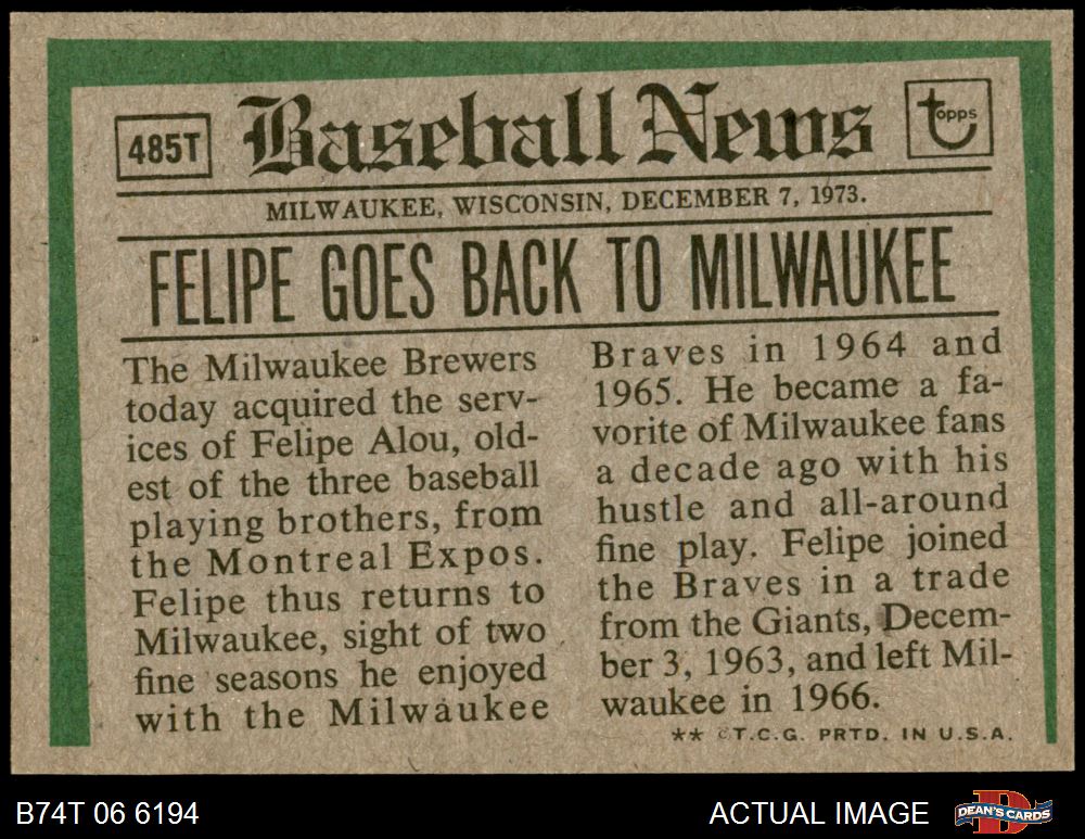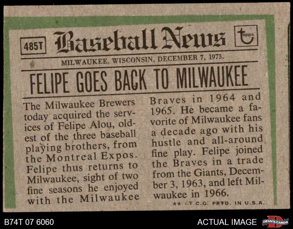 1974 Topps Traded #485 T - Felipe Alou Traded 2 - GOOD