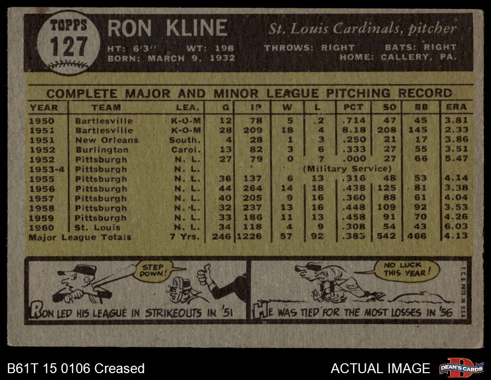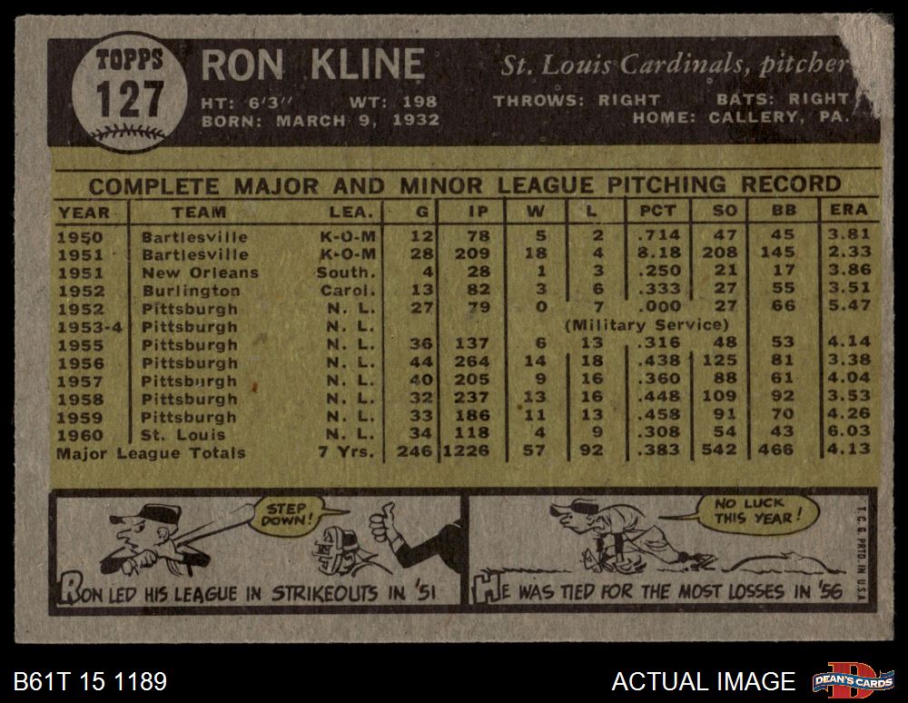 1961 Topps #127 Ron Kline