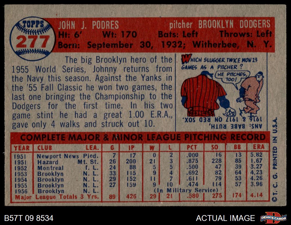 1957 Topps #277 Johnny Podres 4 - VG/EX