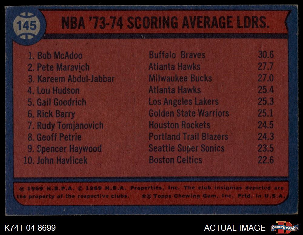 1974 Topps #145 Kareem Abdul-Jabbar / Pete Maravich / Bob McAdoo 3 - VG