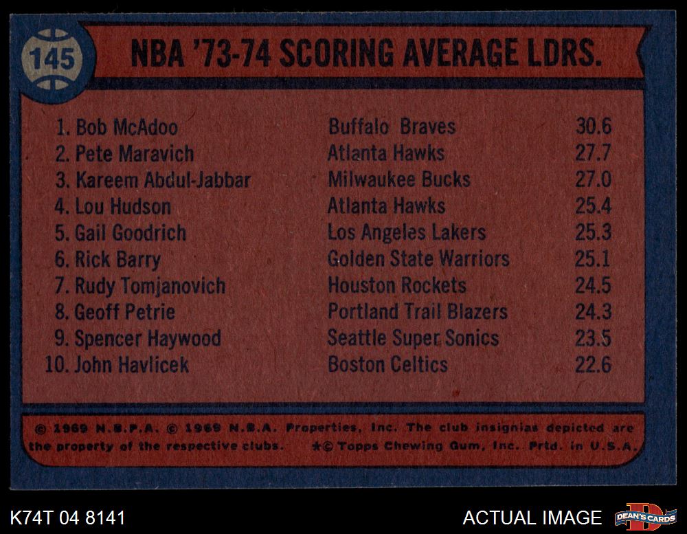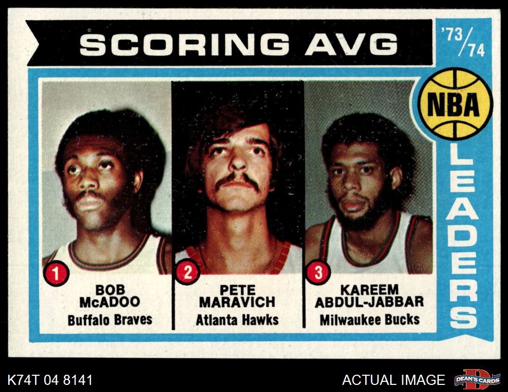 1974 Topps #145 Kareem Abdul-Jabbar / Pete Maravich / Bob McAdoo 5 - EX