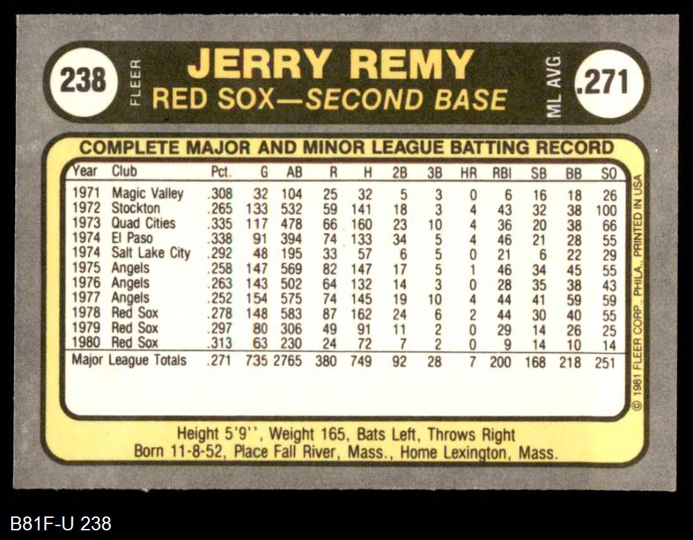 1981 Fleer #238 Jerry Remy