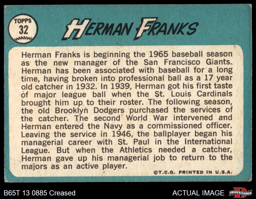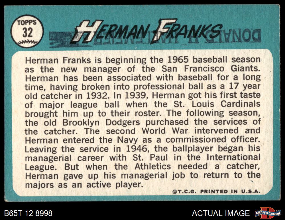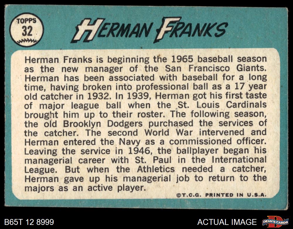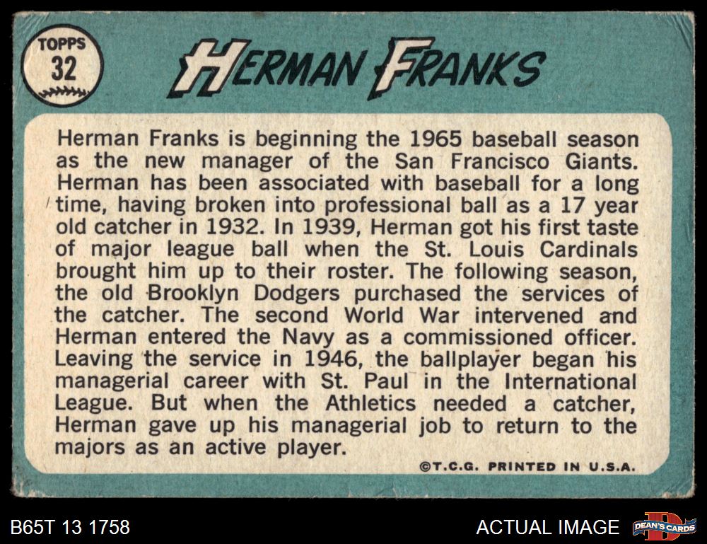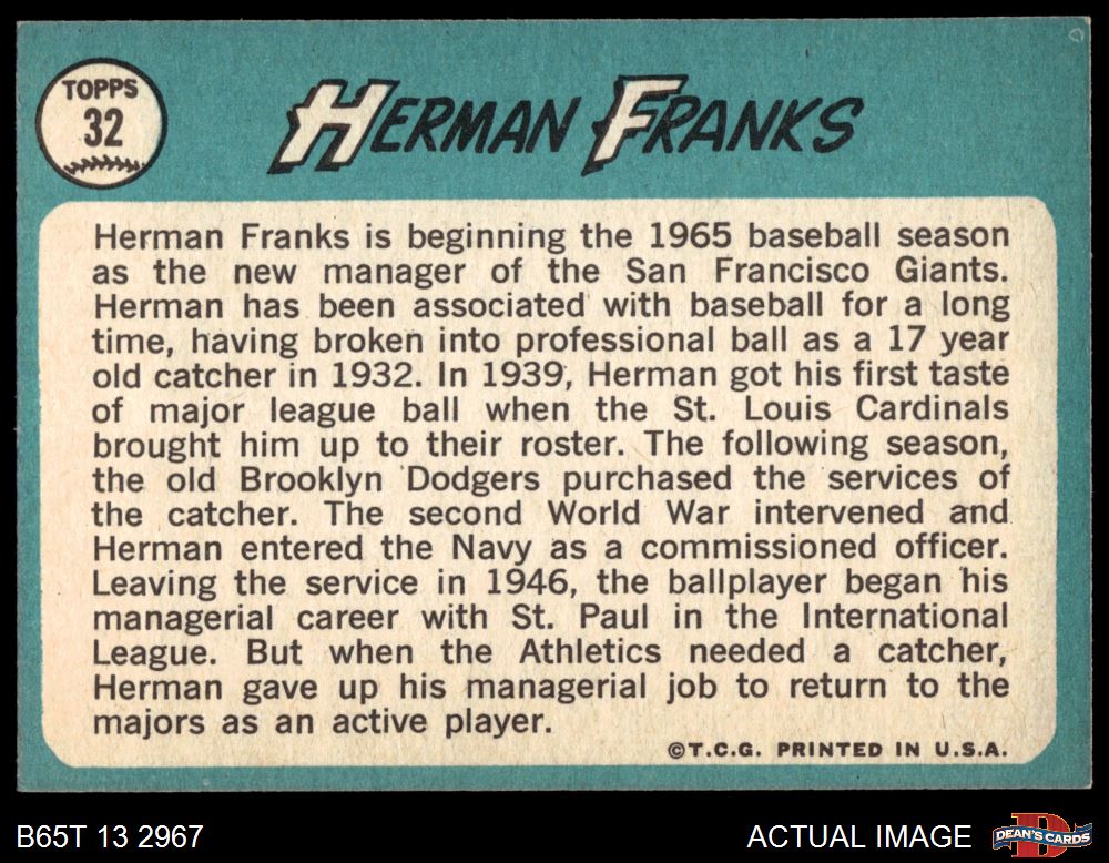 1965 Topps #32 Herman Franks
