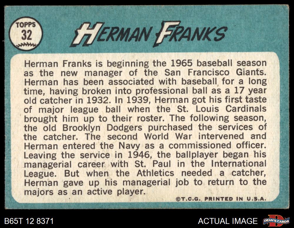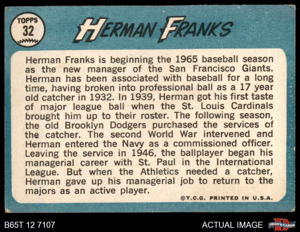 1965 Topps #32 Herman Franks 2 - GOOD
