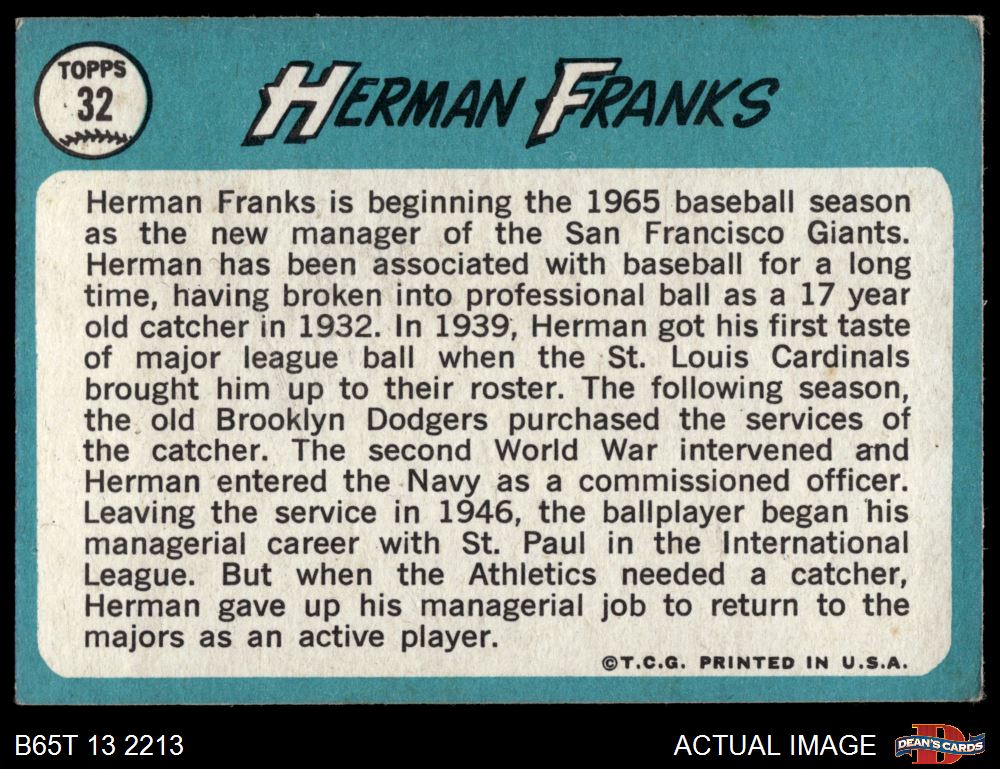 1965 Topps #32 Herman Franks 4 - VG/EX