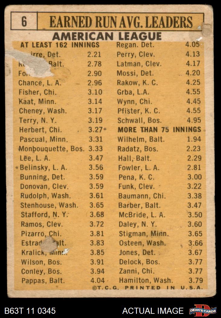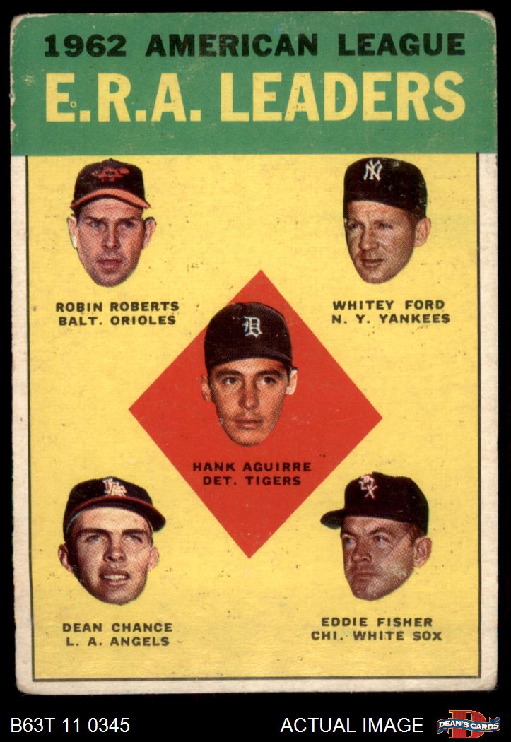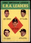 1963 Topps #6 - Whitey Ford / Dean Chance / Hank Aguirre / Eddie Fisher / Robin Roberts AL ERA Leaders 1 - POOR